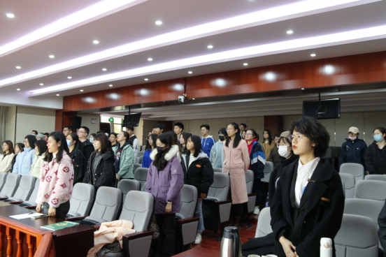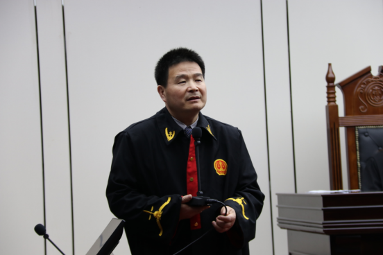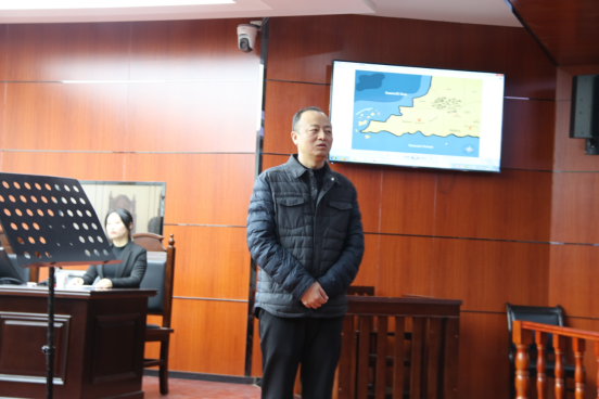 展示开始前,徐建平老师向观摩同学介绍双方参赛队员以及竞赛所用案件的案情。随后,何玉军老师做了发言。他表示很高兴参加这样有特色教学实践活动,鼓励学生多参与,多实践,并期待展示队员在此次展示中充分发挥,尽显风采,也希望观赛同学享受此次模拟法庭展示带来的语言、法律和辩论魅力。