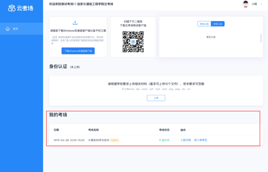 a. 查看考场的日期时间、考场名称等信息,若有疑问及时跟学校管理员取得联系
