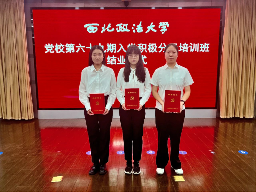 6月25日下午,西北政法大学党校第六十九期入党积极分子培训班结业仪式在长安校区校务楼二楼报告厅举行,我院三名入党积极分子荣获“优秀学员”荣誉称号。