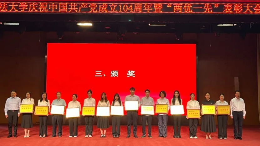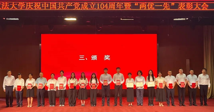 为认真贯彻落实党的二十大和二十届二中、三中全会精神,扎实推进深入贯彻中央八项规定精神学习教育,激励广大党员创先争优、接续奋斗,7月1日下午,西北政法大学庆祝中国共产党成立104周年暨“两优一先”表彰大会在长安校区满天星学术报告厅隆重举行。