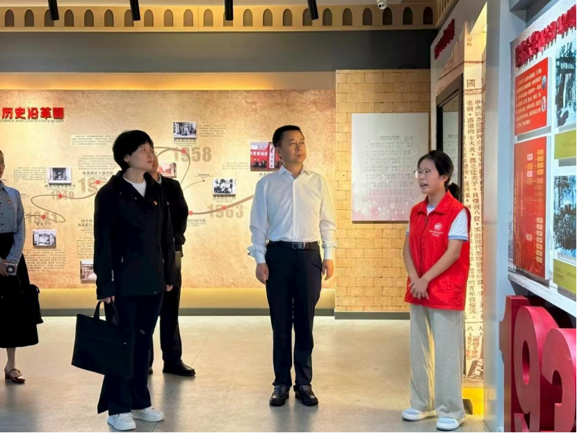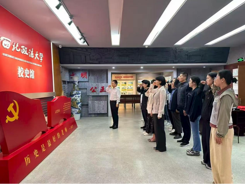 在讲解员的带领下,大家依次参观了校史馆的各个展厅,通过一幅幅资料展板,一件件历史文物,深刻感受学校筚路蓝缕、踔厉奋发的光辉历程。随后,全体人员在校史馆内重温入党誓词,以坚定的誓言表达对党的忠诚和为党的事业奋斗终身的决心。在交流研讨会上,与会人员畅谈心得体会,纷纷表示要对红色校史、实践基地、科学研究等进行高效整合,在系统协同、政策配套、人才培育、提升功能和开放协作上持续用力,为涉外法治工作高质量发展提供坚实制度保障和有力人才支撑。