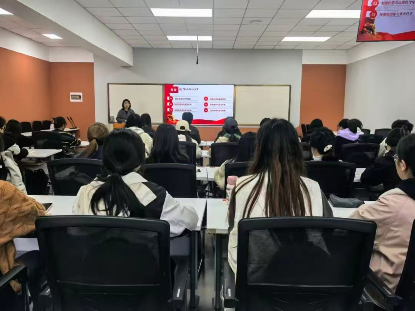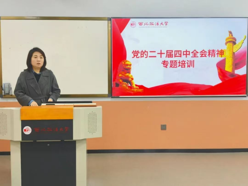 为扎实推动新时代党员队伍建设和教育管理提质增效,提高入党积极分子思想觉悟,端正入党动机,近日,国际法学院党委于德恒涉外法治人才培养基地组织开展党校第七十期入党积极分子培训班第一次集中培训,学院党委副书记吴晓娟以“深入学习贯彻党的二十届四中全会精神”为题为全体学员讲授党课。