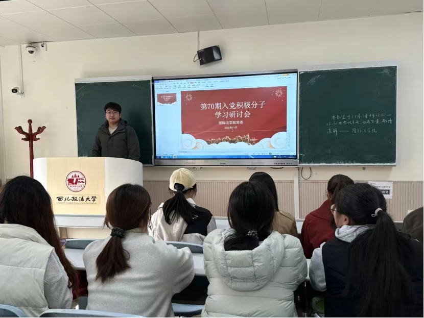 为深入学习贯彻党的二十届四中全会精神,引导入党积极分子深学细悟党的创新理论,筑牢信仰之基、补足精神之钙,近日,国际法学院党委组织开展党校第七十期入党积极分子培训班学习研讨活动。