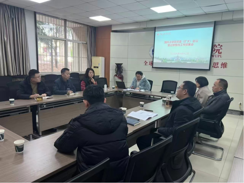 1月12日,国际法学院党委在格物楼一层会议室召开巡察整改工作部署会。学院领导班子成员、科级干部参加会议。学院党委书记李立主持会议。