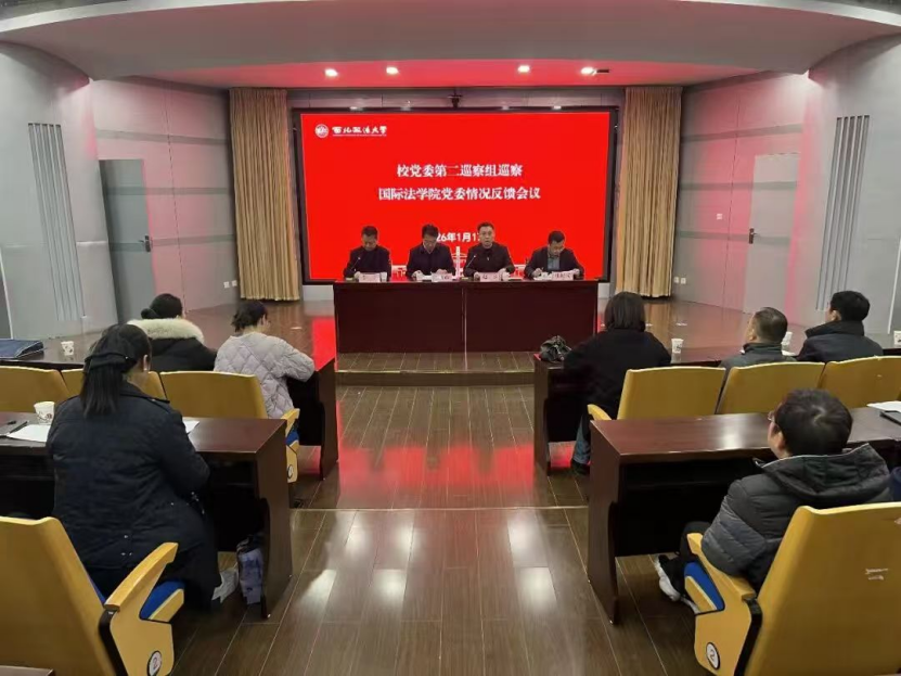 1月17日,校党委第二巡察组巡察国际法学院党委情况反馈会在长安校区校务楼二楼报告厅召开。第二巡察组组长张军政、巡察办主任赵参、学院班子成员、全体教职工参加会议。