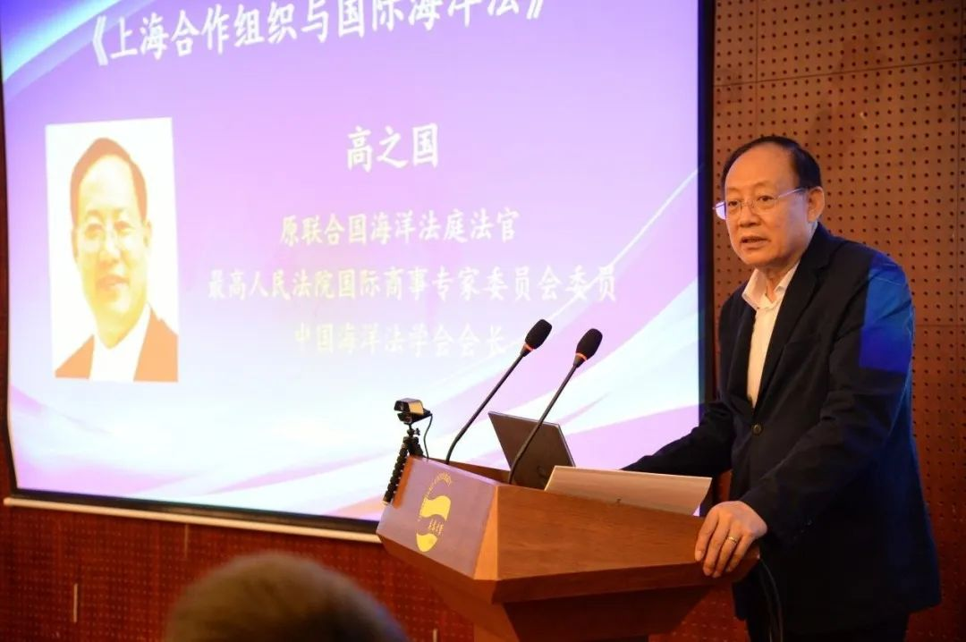 中国海洋法学会会长高之国的演讲主题为《上海合作组织与国际海洋法》。高之国首先介绍了上合组织的基本情况,并从治理和发展的角度分析了内陆国与国际海洋法的关系,聚焦于当前上合组织成员国的海洋法实践,提出上合组织目前对于内陆国在国际法、海洋法公约下享有的权利和义务的重视度和研究力度均有待提高。为拓展、深化、完善上海合作组织的合作方向、合作领域、合作内容,高之国针对上合组织与区域海洋法发展提出了若干建设性建议。高之国法官并向青岛大学赠书,校长夏东伟接受赠书。