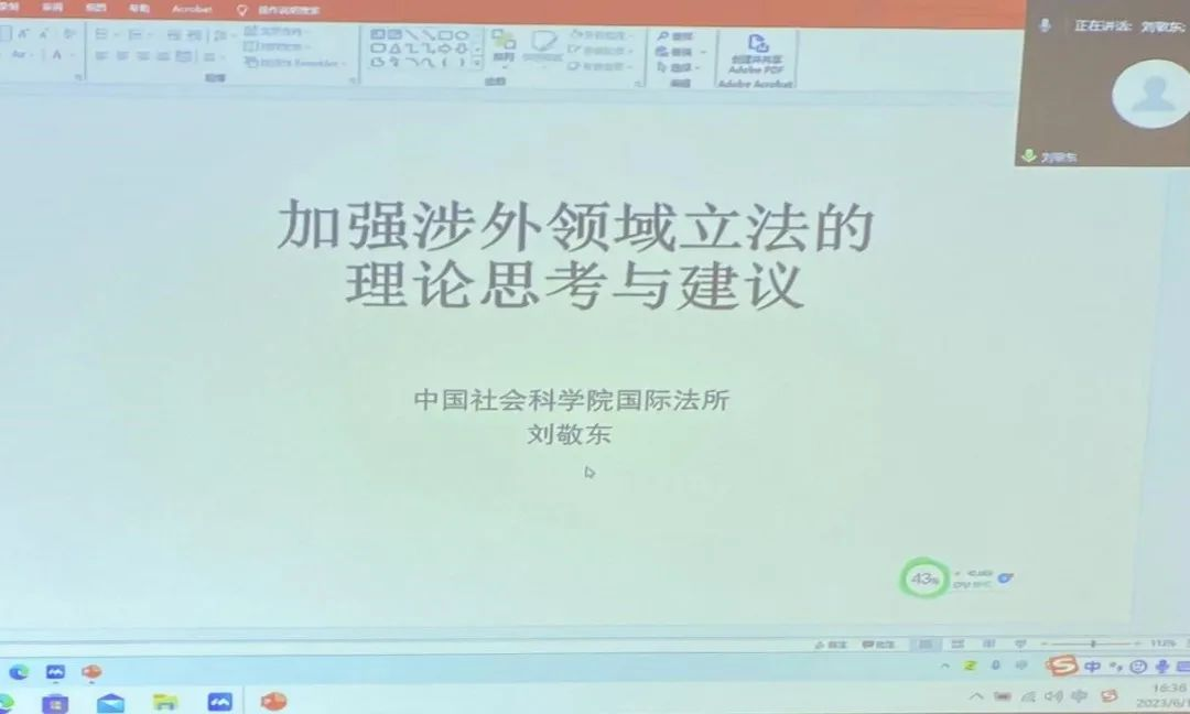 中国社会科学院国际法研究所国际经济法研究室主任刘敬东的演讲主题为《加强涉外领域立法的理论思考及建议》。刘敬东表示,中国的涉外法律体系经历了初创、构建以及成熟三个发展阶段,具有鲜明特点,表现为:将国家安全立法作为立法工作的重点,满足了高水平对外开放的实践需求,实现了与国际法治的有机衔接,并实质性推动了中国域外适用的法律体系建设。刘敬东指出,当前,中国涉外领域立法依然存在管辖权制度相对保守、对外震慑效果不足等问题。针对这些问题,刘敬东给出了加强涉外领域立法的建议,如加快出台《对外关系法》、进一步强化国家安全重点领域的立法等,以进一步提升中国法律和中国法治的国际话语权。