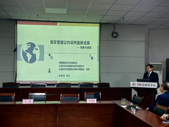 2023年12月25日,由西北政法大学涉外法治研究中心、国际法研究中心主办的“西北政法大学涉外法治研究中心系列讲座”第五期在雁塔校区研究生综合楼国际法报告厅举行。中国国际私法学会副会长、上海政法学院国际法学院特聘院长、海牙国际私法会议“谈判公约”项目、“管辖权公约”项目中国政府谈判代表徐国建做题为《海牙管辖公约谈判最新进展:问题与展望》的学术讲座,西北政法大学涉外法治研究中心执行主任王瀚教授担任主持人,孙尚鸿教授、刘萍教授、张丝路老师与谈,国际法学院博士研究生、硕士研究生40余人参加讲座。