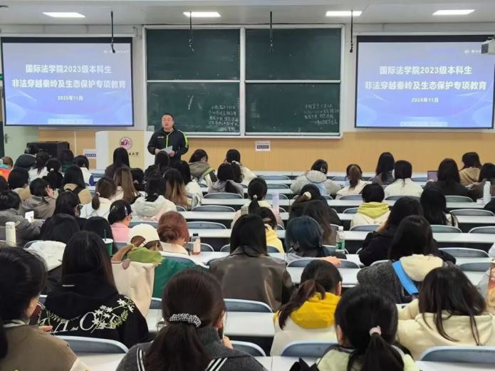 为深入贯彻习近平生态文明思想,切实筑牢学生生命安全防线,引导学生树立正确的自然观与生命观,11月3日,国际法学院(国际仲裁学院)开展禁止非法穿越秦岭及生态保护主题教育活动,2023级辅导员苏芝双主持,2023级全体学生参加。