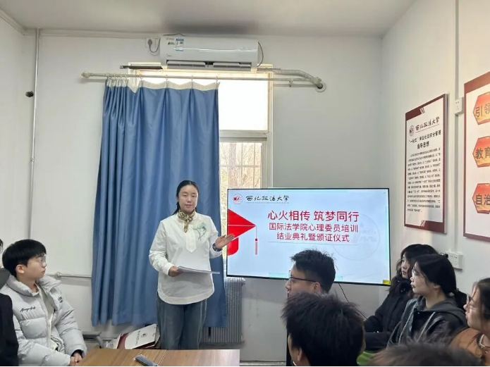 12月4日,研究生辅导员何珊老师在九号楼一站式学生社区为学员主持结业仪式并颁发证书。她强调,心理委员是把握学生思想动态、维护班级和谐氛围的重要力量,系统培训有助于提升其履职能力。心理委员应密切关注同学情绪与思想变化,积极宣传心理健康知识,引导大家理性应对学业压力与情绪波动。何珊老师还结合真实案例,深入浅出地分析了心理问题的潜在影响,并鼓励心理委员主动贴近同学,及时发现异常情况,提供有效支持。