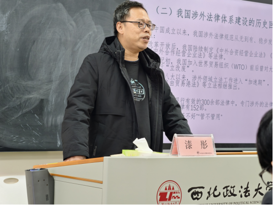 12月1日下午,“我国涉外法治体系建设论纲”专题讲座在我校雁塔校区3号教学楼3607教室成功举办。本次讲座邀请国家高端智库武汉大学国际法治研究院副院长、漆彤教授作主讲人,西北政法大学涉外法治研究中心副主任、张超汉教授担任主持人,国际法学科带头人、三秦学者特聘教授王瀚,国际法学院副院长张光教授,吕江教授、尹海新博士作为与谈嘉宾。