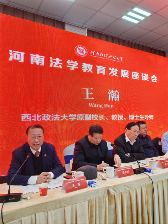 在座谈环节,与会代表围绕“河南法学教育发展”主题进行了深入研讨。座谈会由郑州大学法学院宁金成教授主持,河南法学家代表、华东政法大学郝铁川教授,西北政法大学原副校长王瀚教授,国家法官学院曹守晔教授,中国政法大学于飞教授等分别发言,张文显教授进行了总结讲话。
