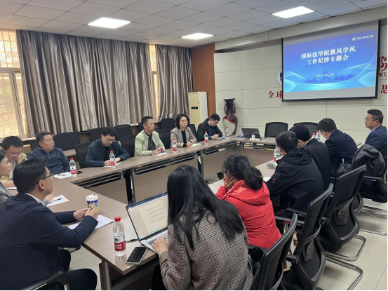 3月21日,国际法学院召开教风学风和工作纪律专题会。学院党委书记李立书记通报了开学后学校教风学风、工作纪律专项整治工作的要求和校院检查自查中发现的问题,提出:第一,提高站位、统一思想,结合年度专题教育活动,把强化纪律要求转变工作作风落实到教学、管理的每一个环节,任课老师要强化课堂管理意识,贯彻落实立德树人根本任务,充分认识到“老师是课堂第一责任人”;第二,认真学习学校制定的各项教学工作制度,特别是《西北政法大学本科教学事故认定及处理办法》、《西北政法大学工作考勤及劳动纪律规定》,清楚本科教学事故类别与级别的具体情形,以最低等级的教学差错作为教学工作的底线,切实形成良好的教学效果;第三,行政教辅人员要强化岗位意识,严格遵守工作纪律,辅导员要深入学生开展师生座谈会、主题班会和朋辈示范引领,学生考核评价等制度性措施引导学生学风建设取得新成效。
