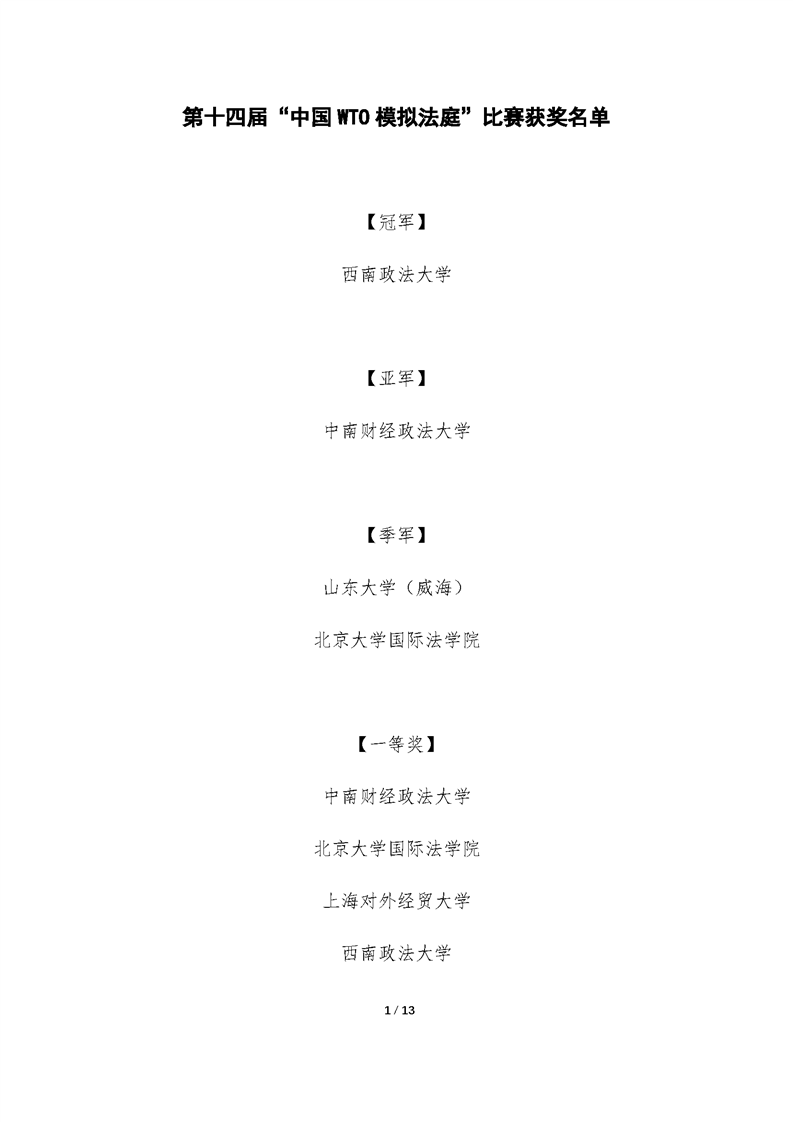 11月29日至12月7日,由西南政法大学、中国政法大学、中国法学会WTO法研究会共同主办的第十四届“中国WTO模拟法庭竞赛”在重庆落下帷幕。经过多轮激烈角逐,我校代表队凭借扎实的专业功底、出色的临场表现脱颖而出,斩获全国一等奖。