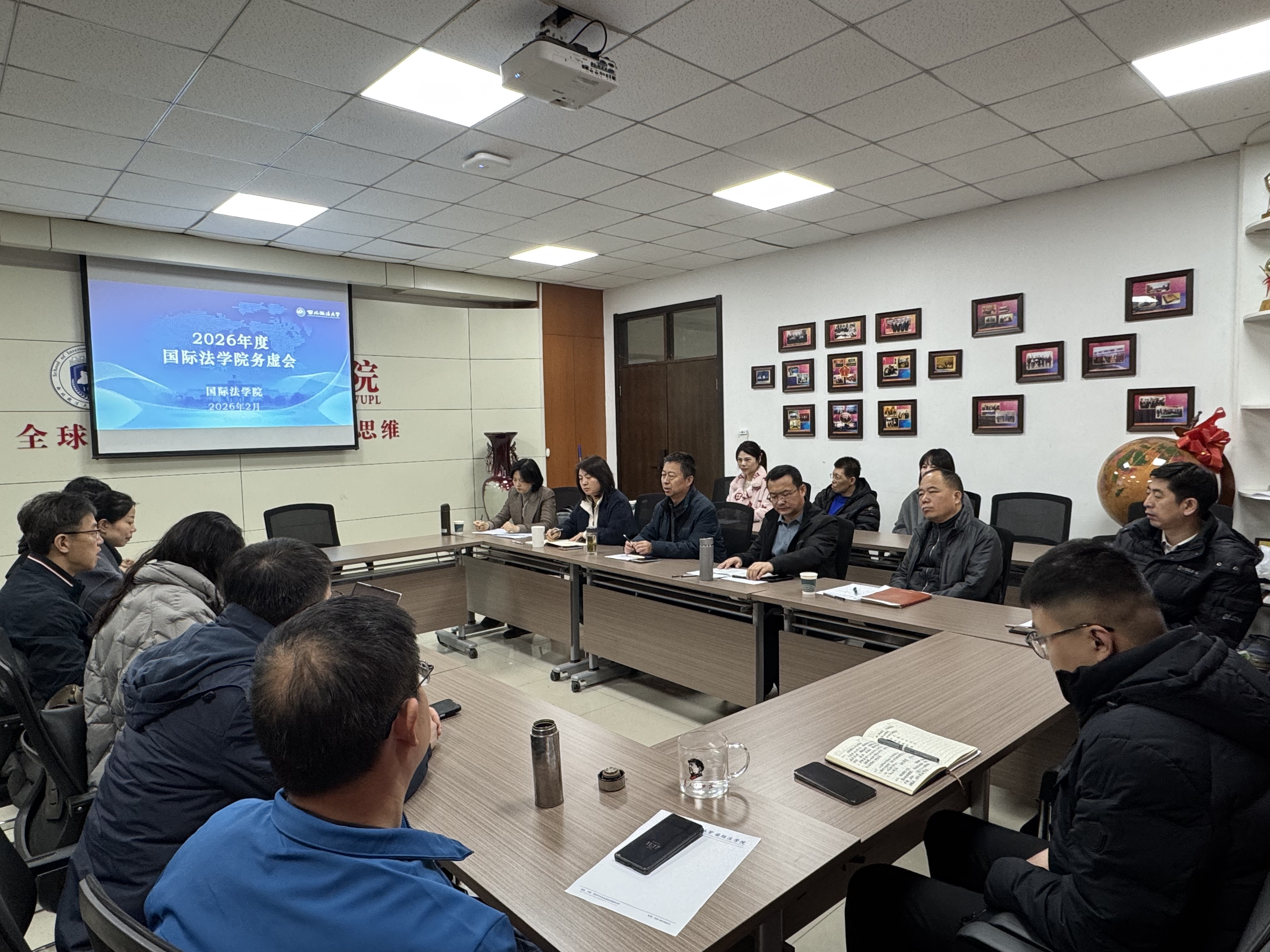 2月28日上午,国际法学院召开2026年度工作务虚会,会议传达了学校 2 月 26 日 2026 年度工作务虚会的会议精神,深入谋划年度发展思路,部署本年度重点任务,统一思想、凝聚共识、汇聚合力。学院领导班子成员,各教研室主任,学院办公室,教务办老师及各年级辅导员参加会议。