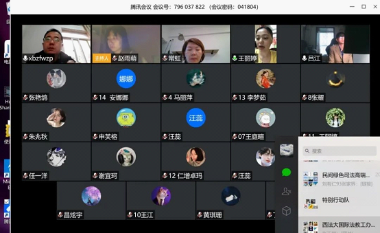 受疫情影响,2020届学生毕业论文(设计)答辩工作不能如期在线下进行。为保障毕业工作有序平稳开展,尽可能降低疫情对毕业生的影响,国际法学院依照线上答辩相关工作的要求,于4月18日在“腾讯会议”上完成了2020届本科生线上毕业论文答辩,成为我校首批采用网络视频方式进行学位论文答辩的学院。