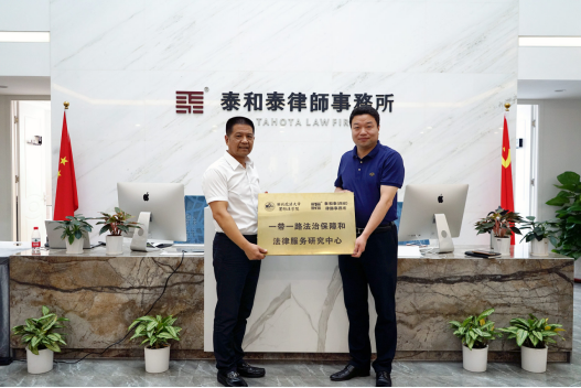 2020年8月6日上午,泰和泰(西安)律师事务所与西北政法大学国际法学院《战略合作框架协议》签约暨“一带一路法治保障和法律服务研究中心”授牌仪式,在西安曲江佳和中心泰和泰(西安)律师事务所顺利举行。西北政法大学国际法学院院长刘亚军,陕西省律师协会副会长、西安市律师协会会长、泰和泰(西安)律师事务所主任姚子奇出席活动并现场签约,标志着泰和泰西安办与知名法律学府的“产学合作”战略迈出了重要一步。参加活动的还有西北政法大学国际法学院副院长潘俊武、党委副书记王聪、教务办老师王艺潜,以及泰和泰西安办高级合伙人陈平、董春红、王小龙,合伙人金文杰等。