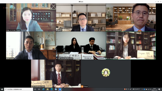 我校参赛队由国际法学院刘亚军院长和师怡副教授担任指导老师。本届代表队成员由国际法学院牵头面向全校进行甄选,最终由国际法学院的成国郡、周韶华、滕菲、赵振博以及民商法学院的陈国龙、麻馨元、陈淑芸、张雨扬共八位同学组成代表队。我校代表队同学在一个多月的紧张准备期间里,完成了仲裁申请书、仲裁答辩书的撰写工作,且进行了多场模拟实战。在为期三天的循环赛中,我校派出麻馨元、陈国龙、成国郡、陈淑芸同学担任上场队员,最终荣获团体三等奖。队员们思维敏捷、沉着应战,在赛场上展现了我校涉外卓越法律人才的培养成效。此外,本届比赛中,我校代表队撰写的文书入围“贸仲杯”优秀文书奖评选。