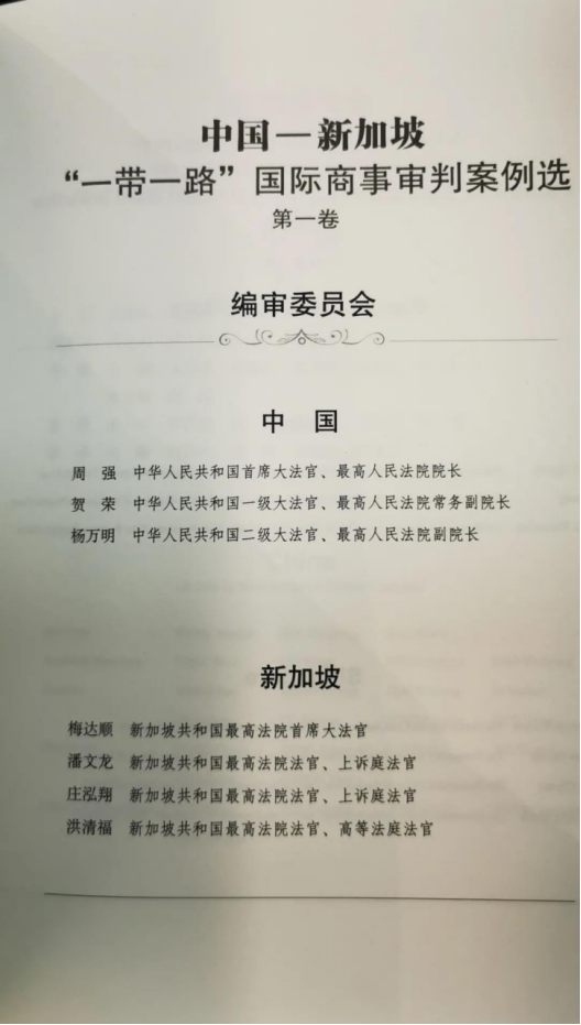 近日,由中华人民共和国最高人民法院和新加坡共和国最高法院联合主编的《中国—新加坡“一带一路”国际商事审判案例选》第一卷和第二卷已由法律出版社出版,是两国开展一带一路建设司法合作的重要成果,该案例丛书由两国最高法院分别吸收本国知名专家学者组成编辑委员会,对一带一路司法实践中的经典国际商事审判案例进行点评和学理评述,为提升国际商事审判司法实践水平提供重要理论支持。我校国际法研究中心主任、中国国际私法学会副会长王瀚教授受聘该案例丛书(中国)编辑委员会专家参与案例评述和编辑工作。