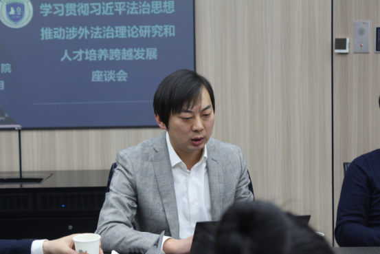 座谈会上,国际法学院院长刘亚军汇报了学院认真学习贯彻落实习近平法治思想的总体情况,并从师生思想政治教育和党建工作取得新的成效、学科平台建设迈上新台阶、师资队伍建设再添新成果、教学工作开创新局面、学科建设和科研创新实现新突破、人才培养与学生工作取得新进展等方面回顾了学院在2020年取得的工作成绩,着重介绍了学院在全国科研获奖、国家社科立项、省级协同创新中心申创等方面实现的多个重大突破。