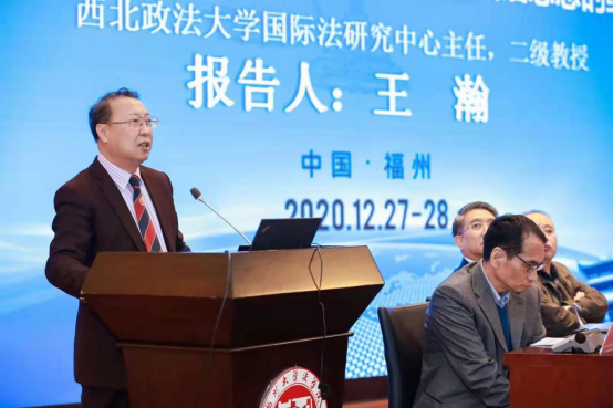 主旨报告环节于福州大学法学院模拟法庭举行,由国际民航组织法律事务与对外关系局局长、武汉大学国际法研究所教授黄解放,武汉大学国际法治研究院院长、国际法研究所所长、长江学者肖永平,西北政法大学国际法研究中心主任、二级教授王瀚,中国人民大学杰出学者支持计划特聘教授石静霞,上海师范大学哲学与法政学院院长蒋传光分别作主旨报告,主旨报告由厦门大学法学院徐崇利教授主持。