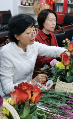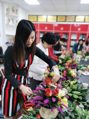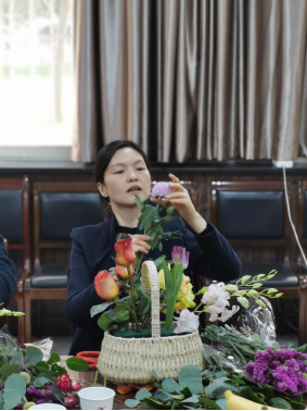 为了迎接三八国际妇女节,国际法学院于2021年3月5日下午在学院大会议室举办了“生活花艺”插花教学活动。活动伊始,学院党委书记李立向全院女教师职工献上了最诚挚和最美好的节日祝福。本次活动由党委副书记王聪主持。花艺师简单介绍了此次插花所用的花材,以及生活日常鲜切花的养护,在讲述了本次活动插花的方法后,每位教师开始了自己的插花创作,现场欢声笑语,在鲜花的映衬下每位老师都笑颜如花。