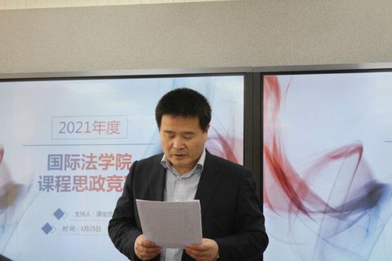 为推进以“学科德育”为核心理念的课程改革,深入贯彻落实习近平总书记关于教育的重要论述和全国教育大会精神,落实教育部《高等学校课程思政建设指导纲要》有关要求,国际法学院于3月25日下午两点半在西北政法大学长安校区5号教学楼智慧教室407开展了“课程思政”教学竞赛活动。我校校党委宣传部部长戴鲲、图书馆馆长张宏斌、行政法学院副院长李大勇教授、国际法学院党委书记李立、国际法学院国际经济法教研室主任周景安、国际私法教研室副主任张望平、国际公法教研室主任王泽林,学生代表张兴担任本次比赛的评审。活动由国际法学院教学院长潘俊武教授主持,李捷音老师、高媛老师、王阳老师、尹海新老师和梁蓉老师等五位老师参加比赛。