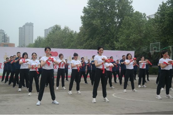 为庆祝中国共产党成立一百周年,弘扬中华民族奋斗精神,激发广大教职工干事创业的活力和热情,国际法学院党委积极响应校工会号召,于4月21日组织全体教职工在长安校区体育馆参加2021年教职工健身操团体比赛。