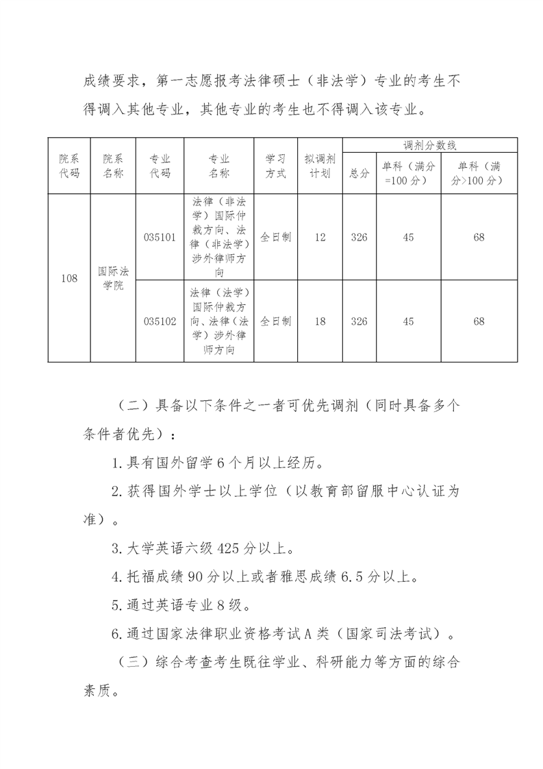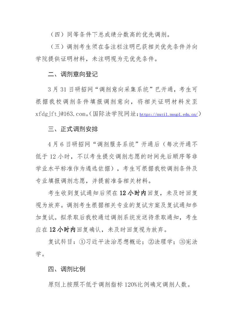 国际法学院调剂考生复试录取方案