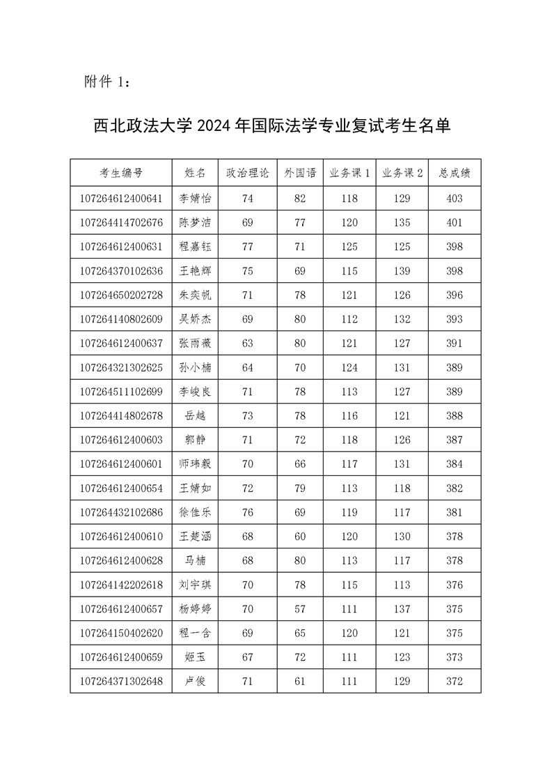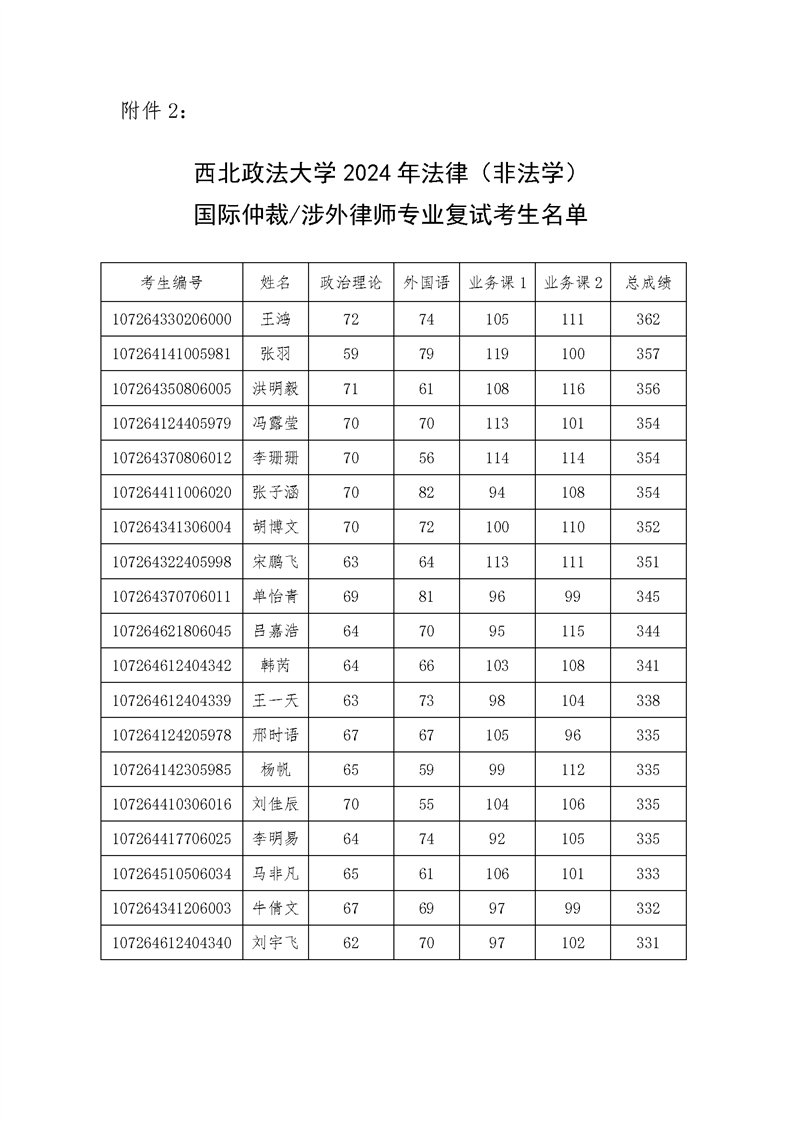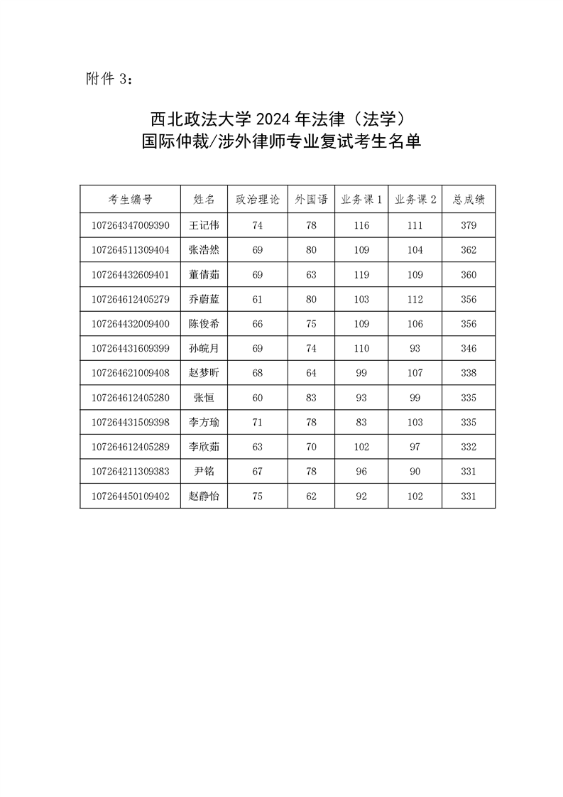 2024年国际法学院硕士研究生拟录取公示名单