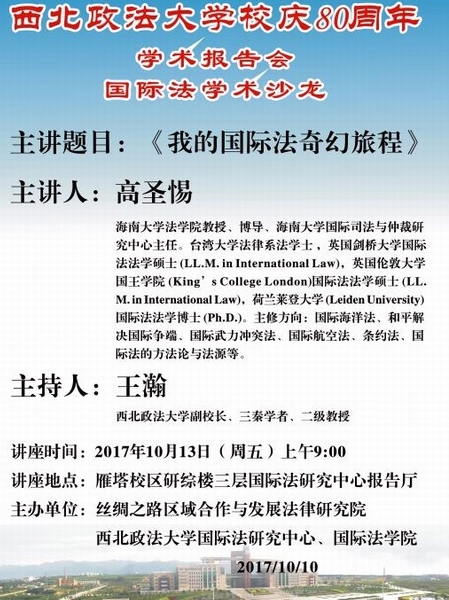 西北政法大学校庆80周年学术报告会国际法学术沙龙预告(二)