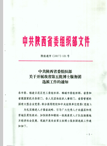【转发】中共陕西省委组织部关于开展我省第五批博士服务团选派工作的通知