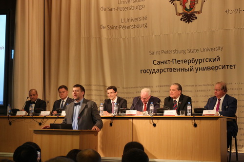 2019年5月14日上午十点,由俄罗斯律师协会和圣彼得堡国立大学主办的第十届“国际青年法律论坛”在圣彼得堡国立大学顺利举行。我院17级硕士研究生蔡亚琦和我校其他专业两名研究生与北京师范大学、吉林大学、郑州大学等中国高校师生代表同来自美国、法国、意大利、韩国、日本、哈萨克斯坦等世界各地的代表一道参加本次全体大会及分论坛的系列活动。